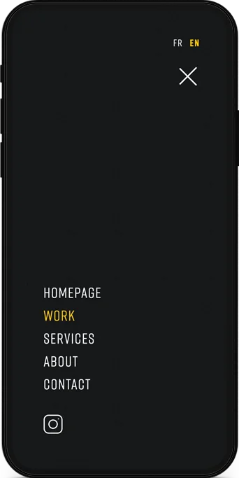 Un style sobre, rehaussé par des polices de caractère et un fond noir uni ont permis de mettre en valeur ses réalisations artistiques.